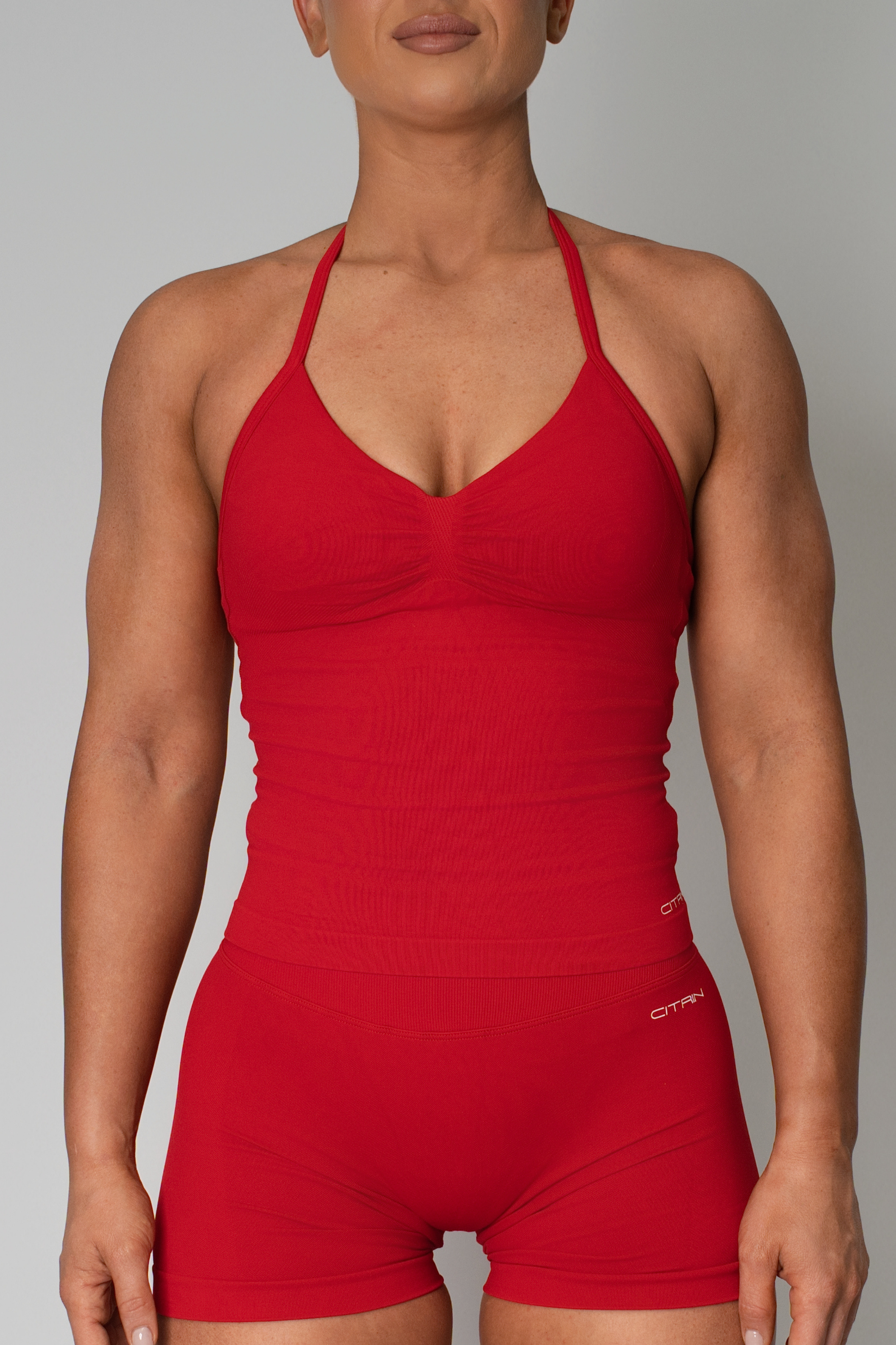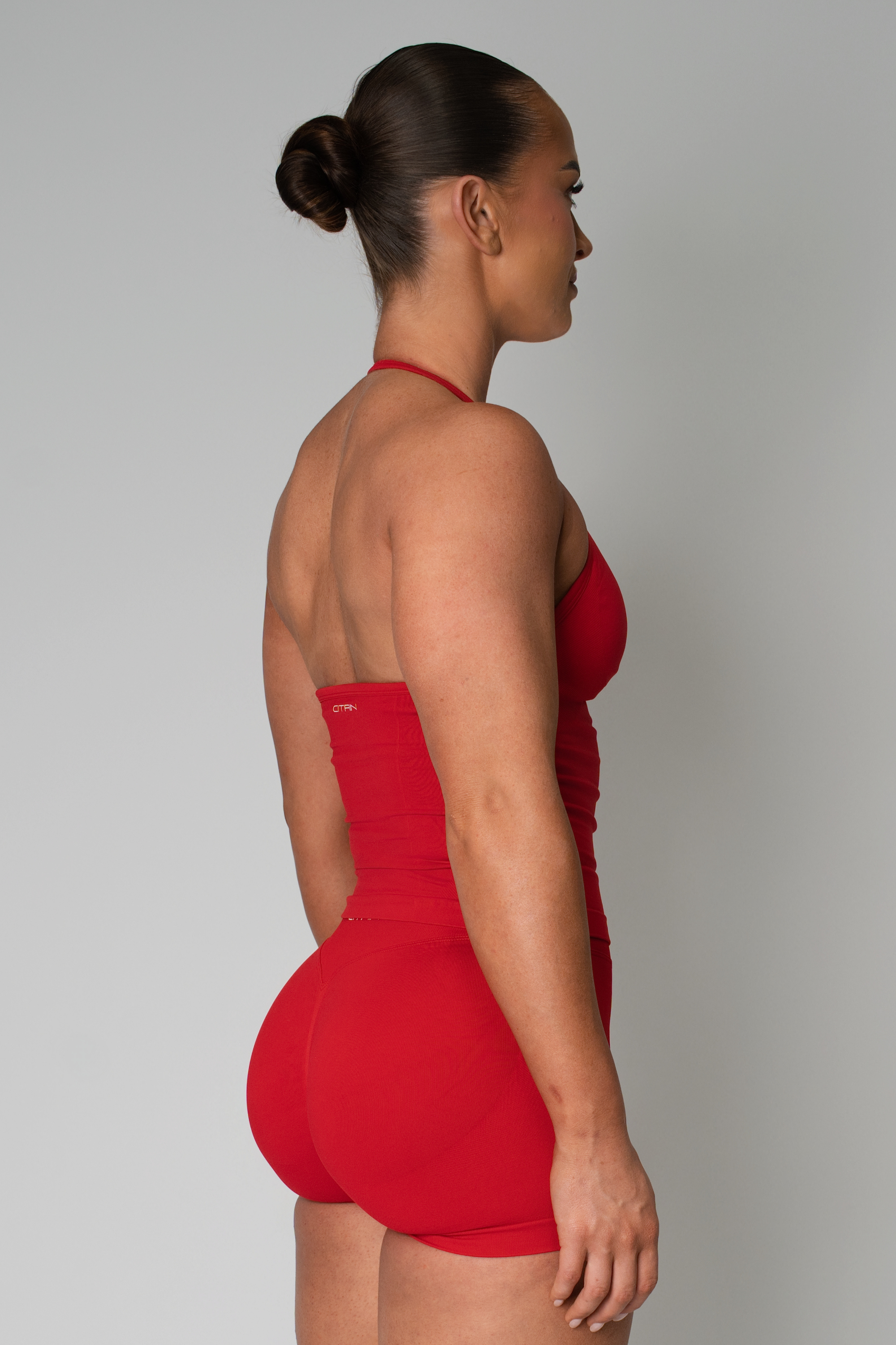 TRUE SHAPE RUCHED HALTER TANK - RED